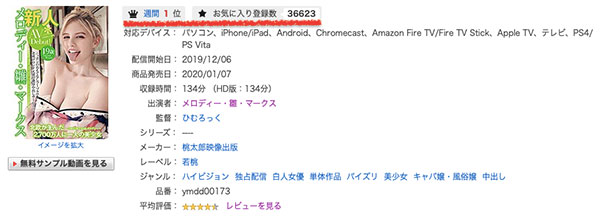 您可能会去查询各家片商的新人,因为就像去酒店听到小姐是第一天上班会特别兴奋一样,日本影迷也对刚出道的新人情有独锺,没错,近来买气最旺的是新人没错,但她其实不能算是新人,那就是在片商桃太郎映像出版登场的「メロディー・雏・マークス(Melody・雏・Marks)」: