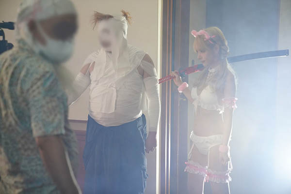 可以看到桃乃木かな常常跟哥哥一起练习挥刀,她挥刀的样子不得不说还真的蛮搞笑的XD,而每日努力练剑的她目标自然是打败大岛丈扮演的Boss,戴著帽子的他可说是最不像的无惨!